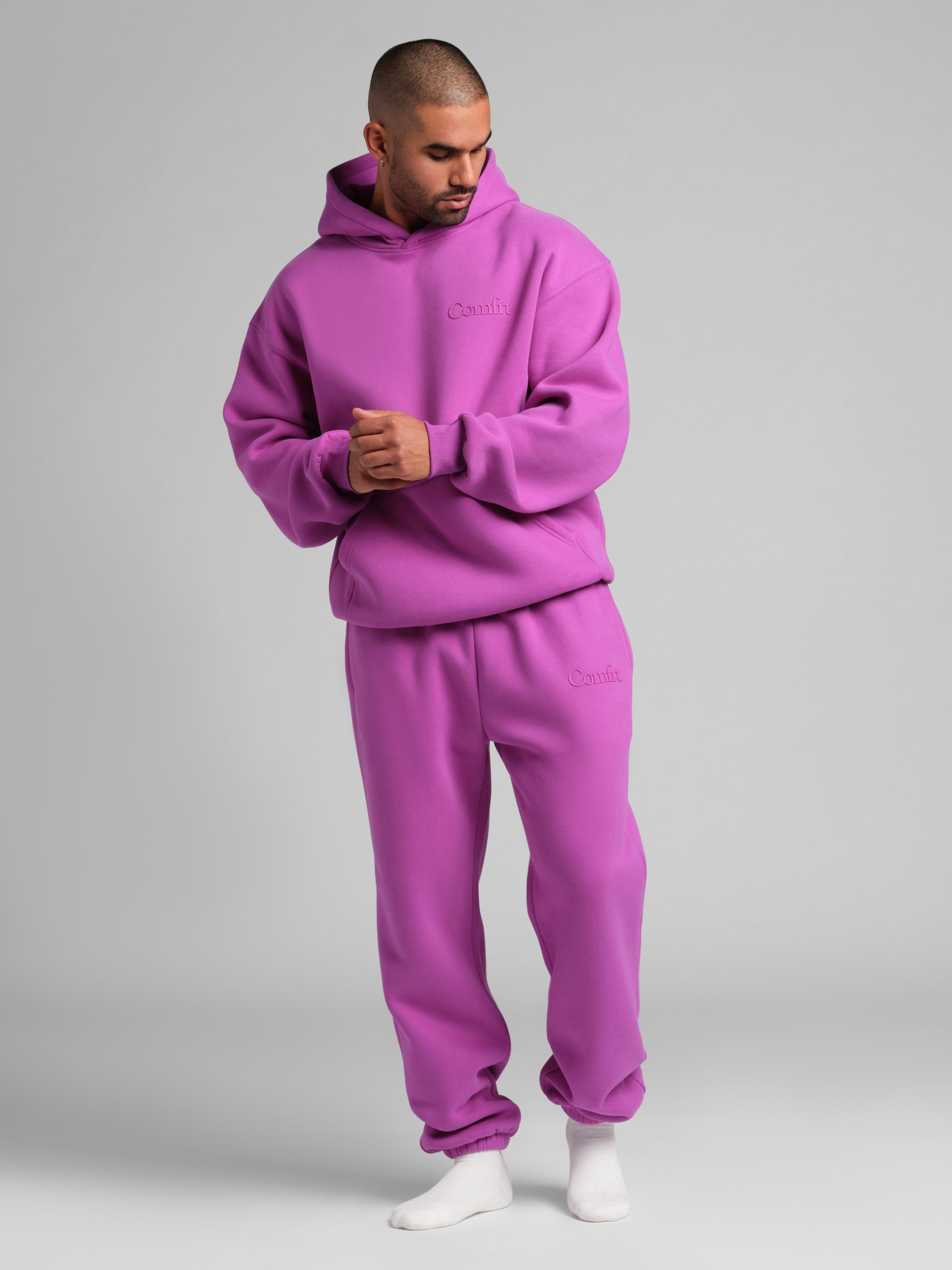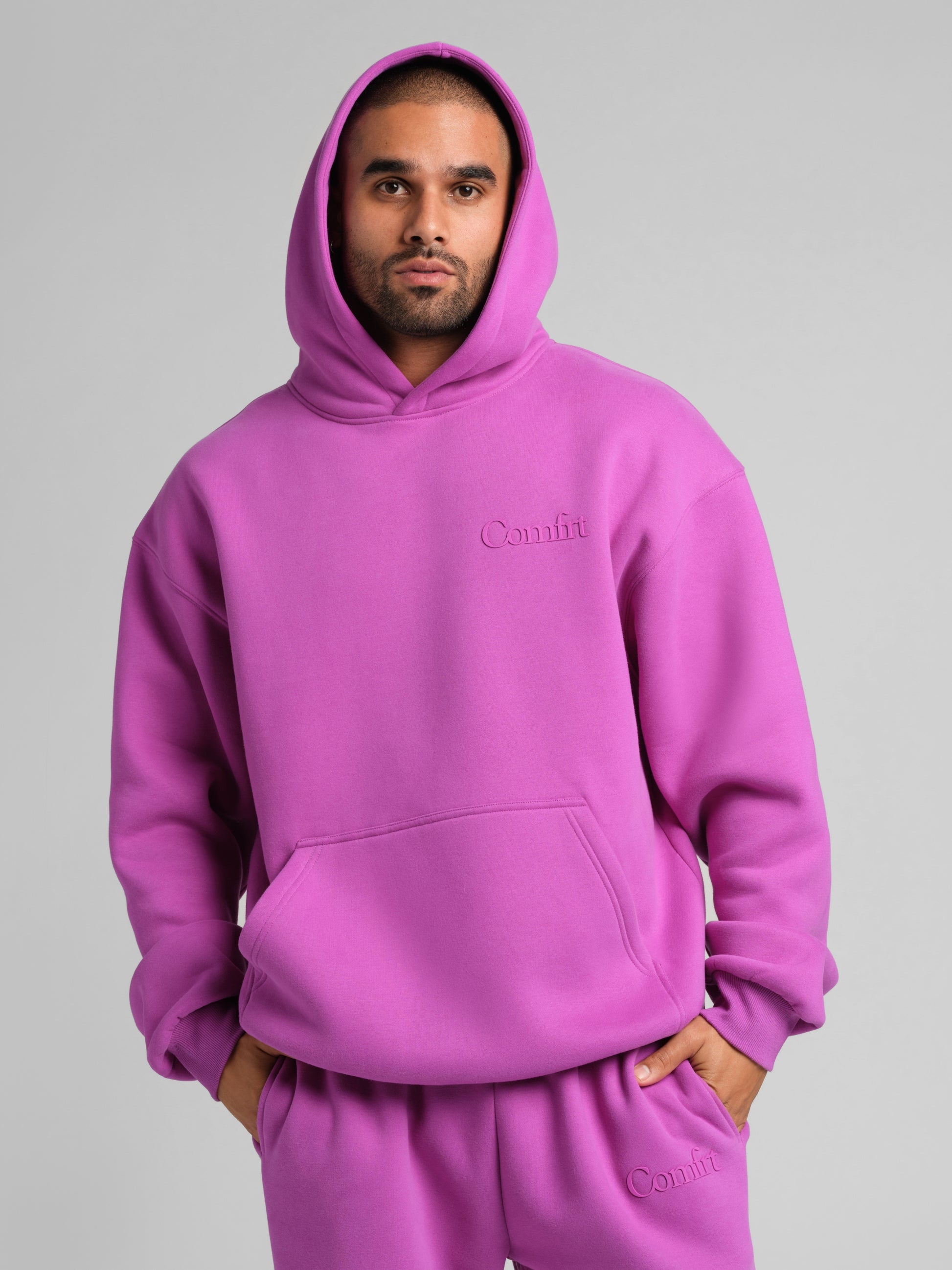 The Minimalist Hoodie has a more oversized fit with slightly more room in the chest and a longer length compared to our Signature, Standard, Coordinate, and Camo Hoodies. Size down for a closer fit.